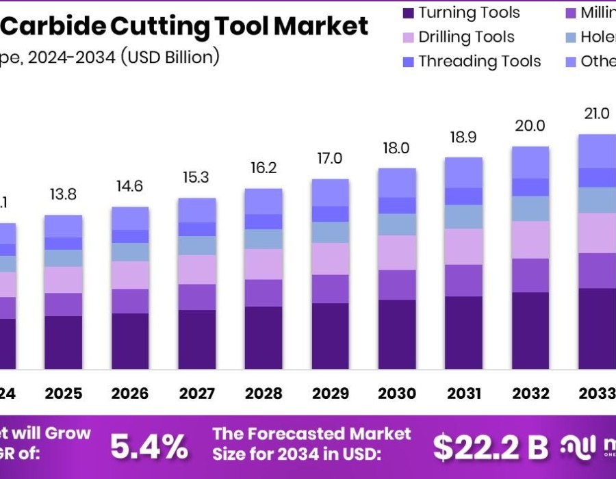 - Global Carbide Cutting Tool Market is expected to be worth around USD 22.2 billion by 2034, up from USD 13.1 billion in 2024, and grow at a CAGR of 5.4% from 2025 to 2034.